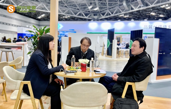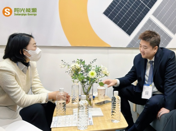 本次展會,陽光能源集中展示了公司的前沿技術(shù)和先進的光伏組件產(chǎn)品,5 款展品高度契合以小型項目為主導的日本光伏市場需求。其中一款 Giga-N 系列 48 片輕質(zhì)雙玻戶用光伏組件,采用了 N型TOPCon 電池技術(shù)搭載 210R 矩形硅片,極大地提升了發(fā)電效率,組件轉(zhuǎn)換效率提升到 23.0% ,即便在弱光環(huán)境下也能高效運作;在外觀設(shè)計方面,打造更加簡約時尚的全黑外觀,適用于各類建筑風格。