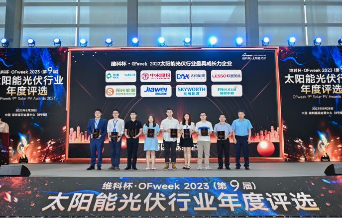 經過前期專家組評審、大眾網絡投票及組委會綜合評審層層篩選,陽光能源憑借綜合實力和行業影響力等優勢,榮獲了“維科杯?OFweek 2023太陽能光伏行業最具成長力企業”獎項。本次評選活動旨在表彰光伏行業具有突出貢獻的優秀產品、技術及企業,鼓勵更多企業投入技術創新,引導光伏行業穩健發展。