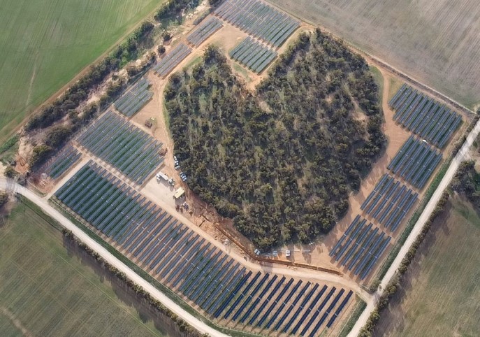 澳大利亞默裏河沿岸的一個小鎮上,從高空俯視下去,能看到一片愛心形狀的植被。最近,陽光能源的組件抵達了這個小鎮,並與這一片原始森林來了一場“愛”的邂逅。